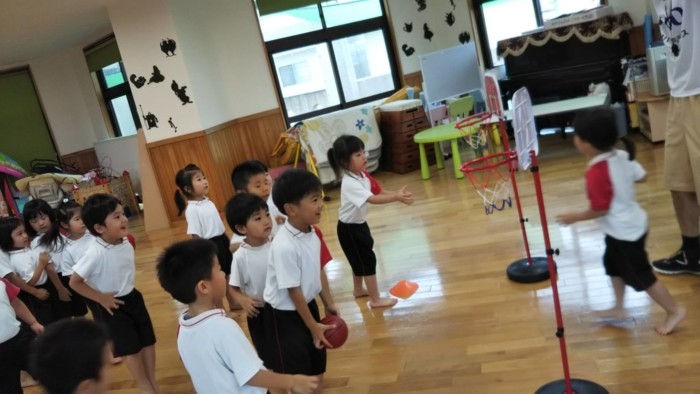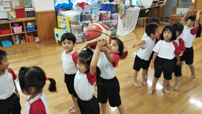 バスケットボールに触れる遊びやシュート練習⛹️🏼ドリブルしているボールを取るゲームも!ぼるたんともたくさん触れ合えて大喜び💞