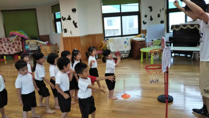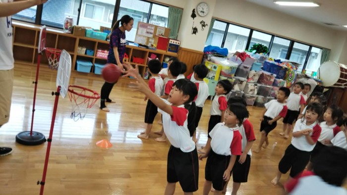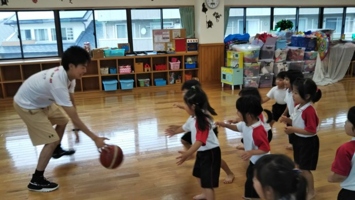 熊本ヴォルターズの方が来られてバスケットボールの体験がありました!!