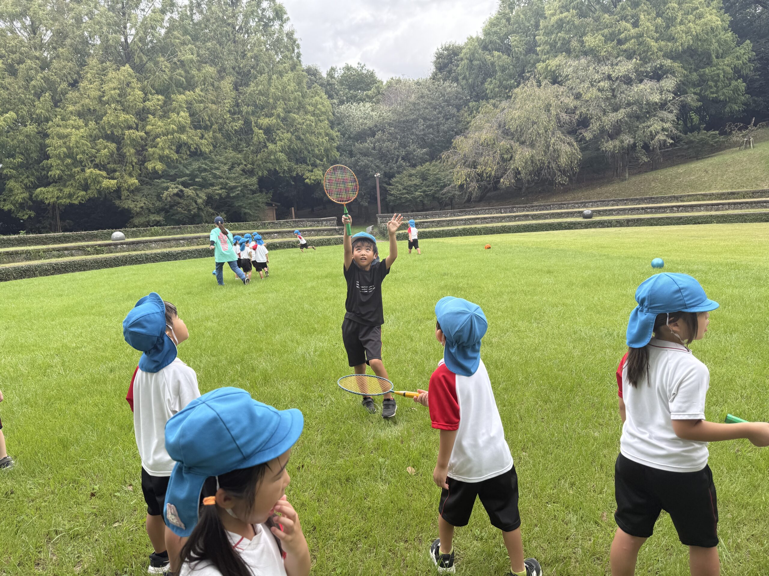 遊具等は何も無い為、バトミントンとボールを持ってきて遊びました!!