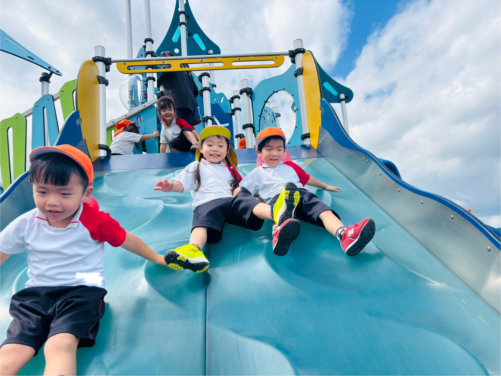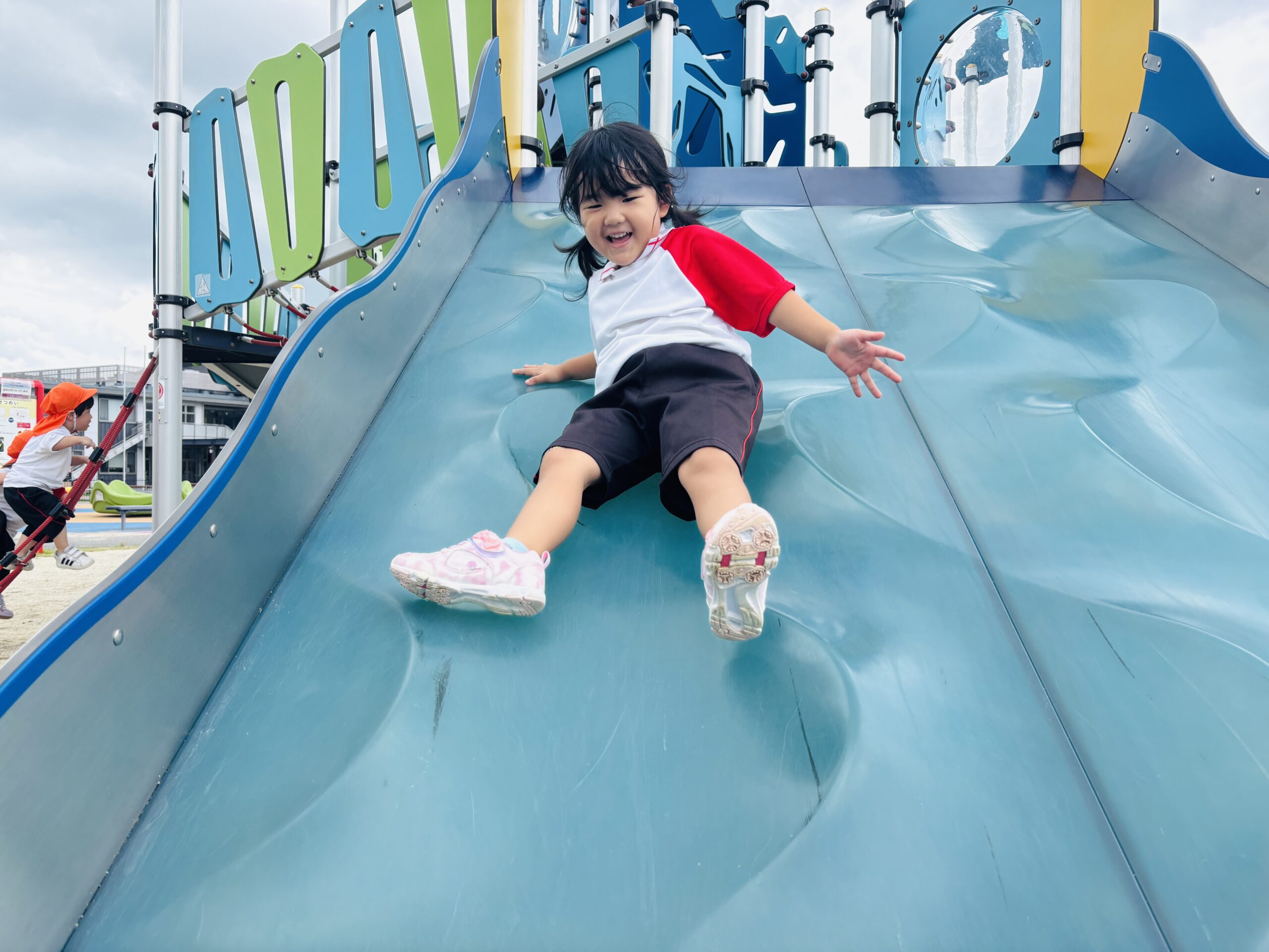 デコボコすべり台は少し怖いお友だちもいましたが、お友達と滑ったり、回数を重ねたりしていくうちにどんどん慣れ、人気遊具の1つになりました✨️