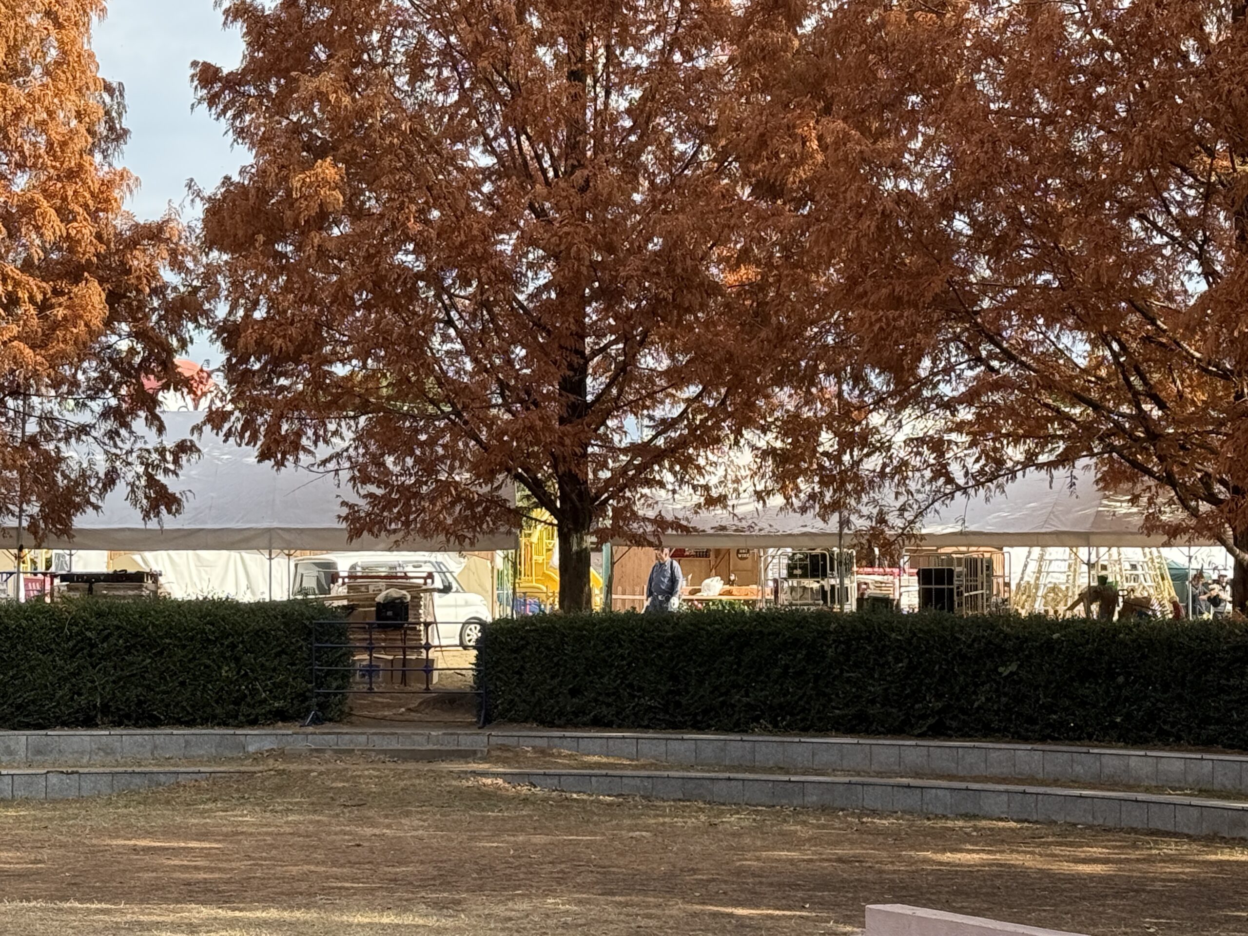 ゆめタウンの裏の公園!時計台の東側に、会場設営されてました🌲