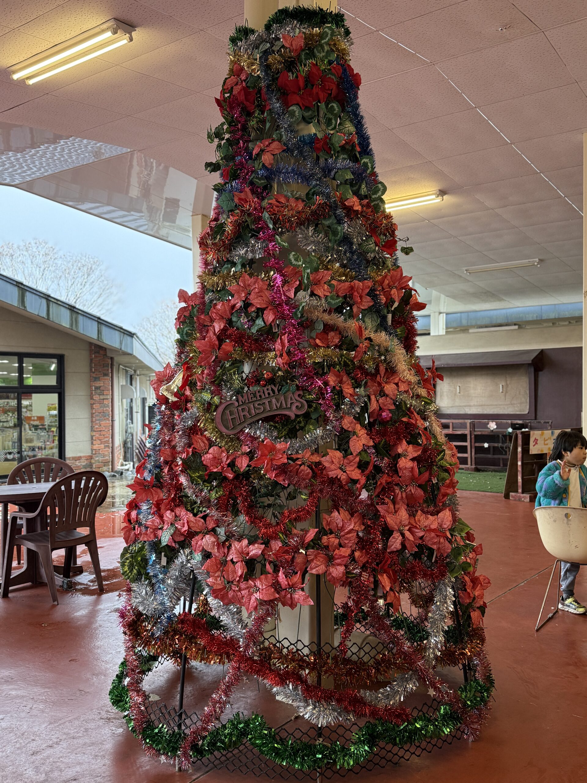 華やかなクリスマスツリー🌲と一緒に、お弁当を食べました‼️