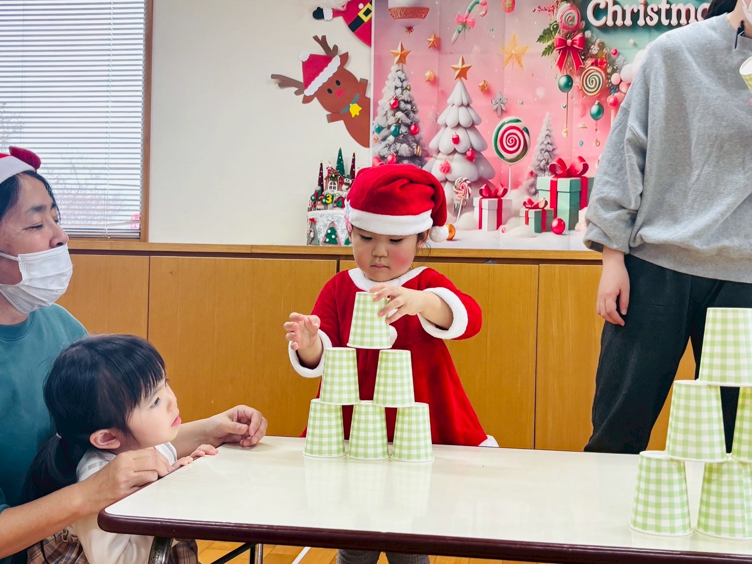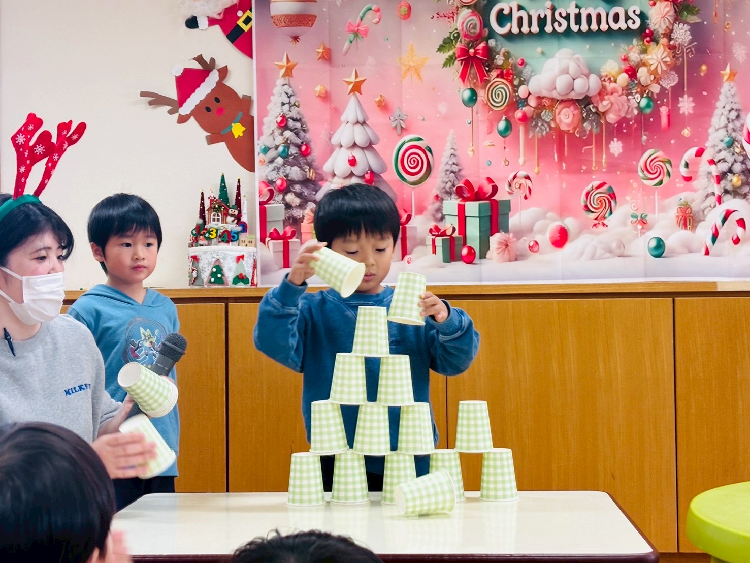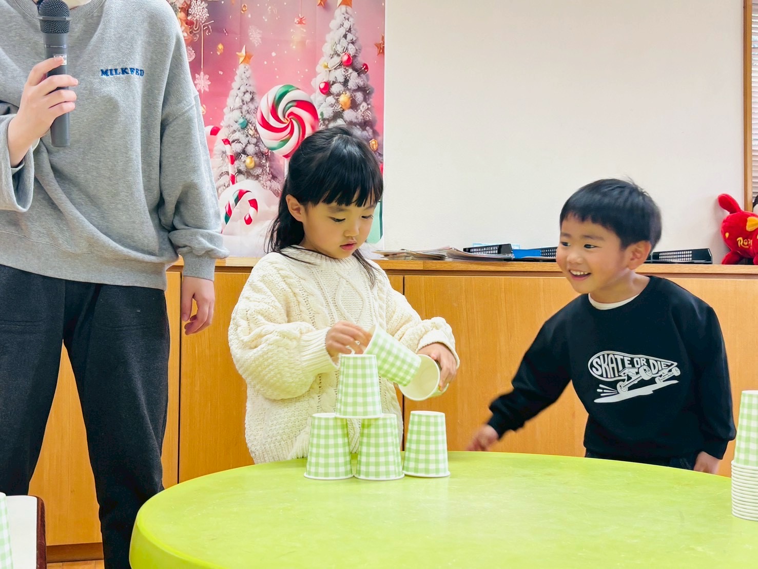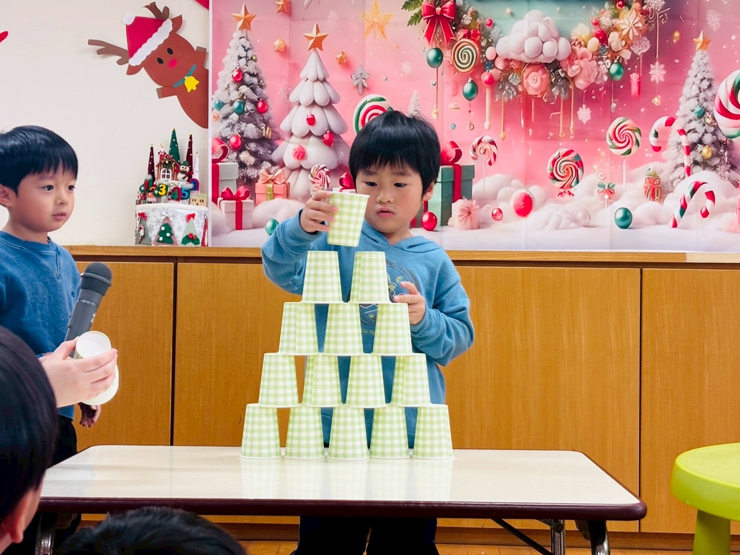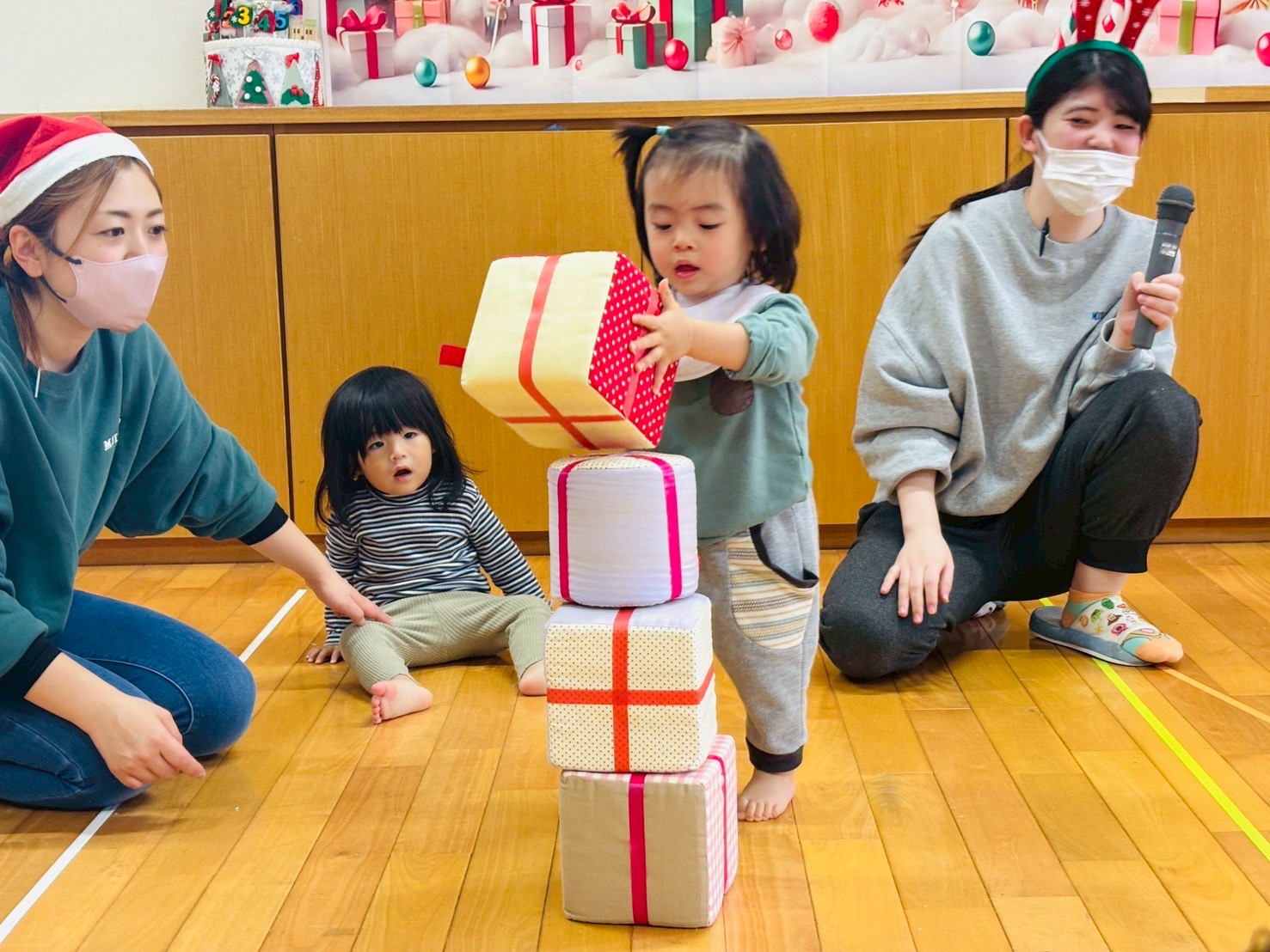 プレゼントを4つ先に積み上げた方が勝ちというゲームでみんな頑張っていましたよ😆