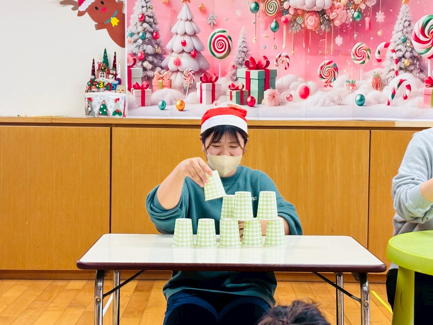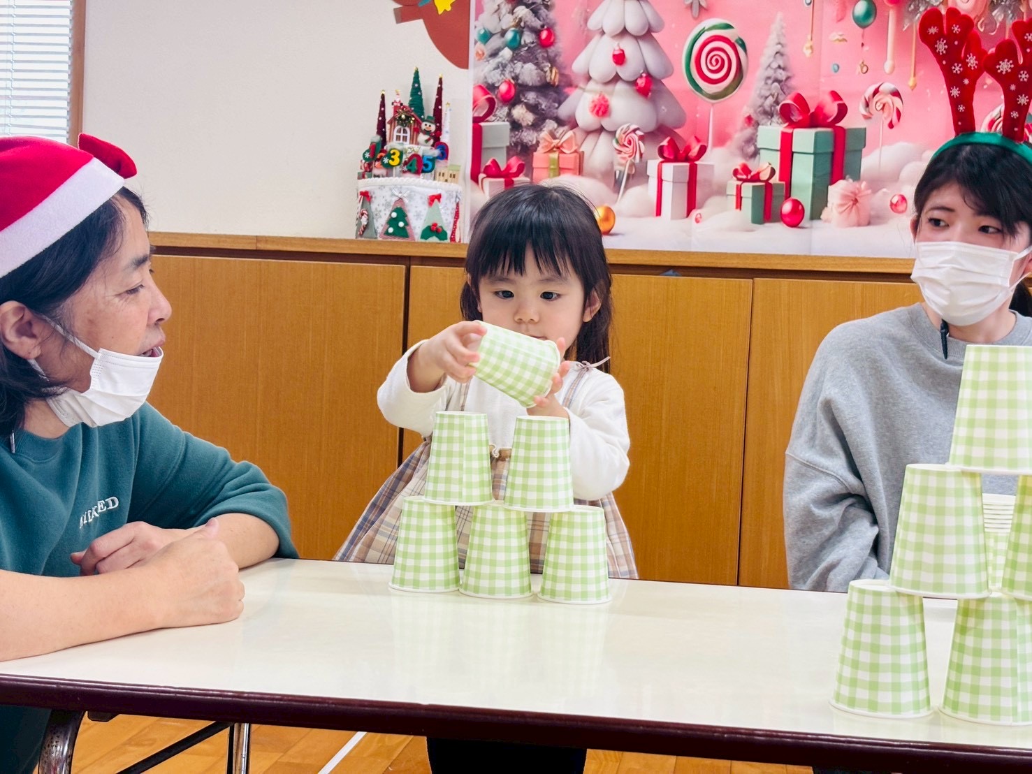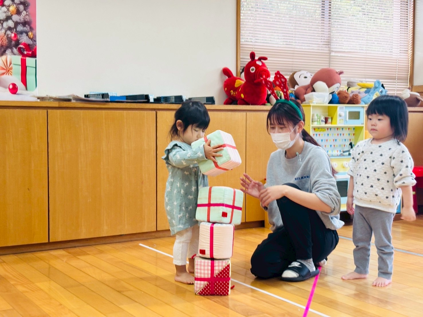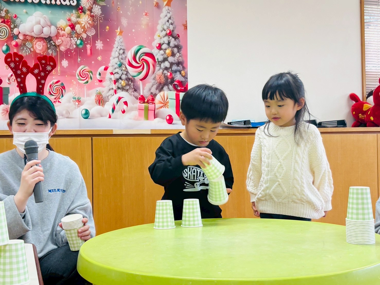 プレゼントを4つ先に積み上げた方が勝ちというゲームでみんな頑張っていましたよ😆