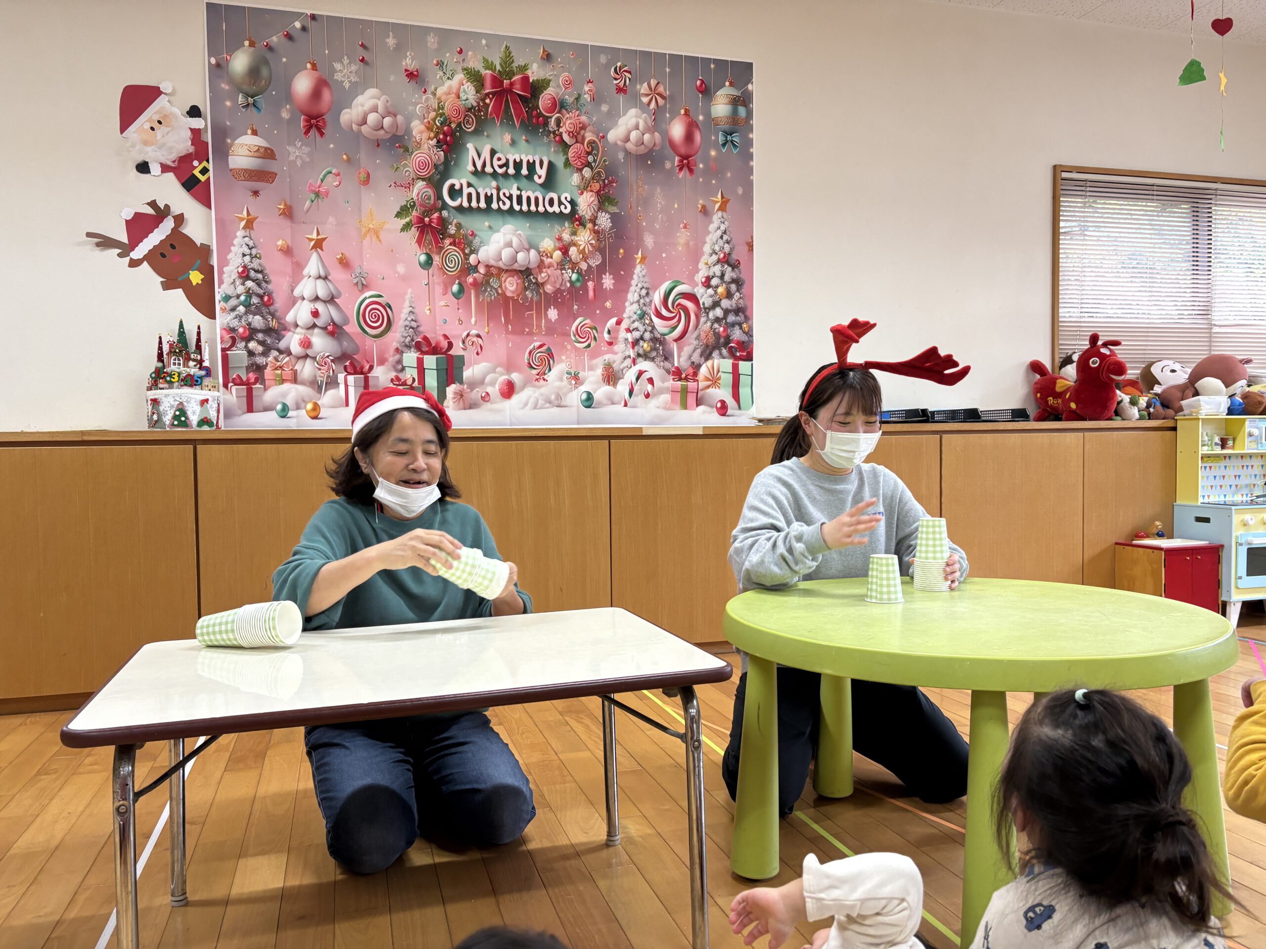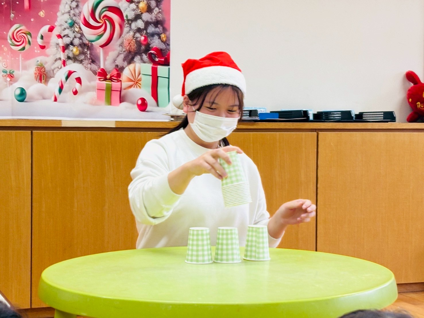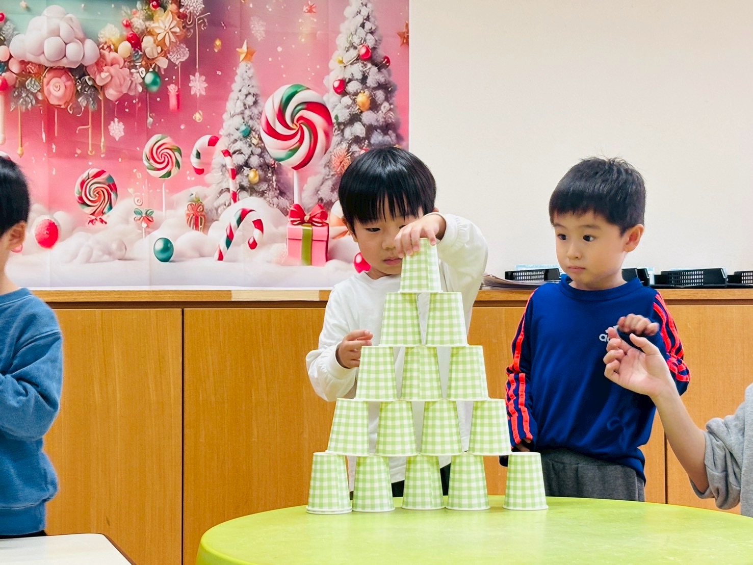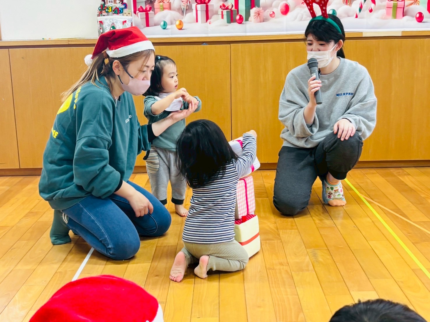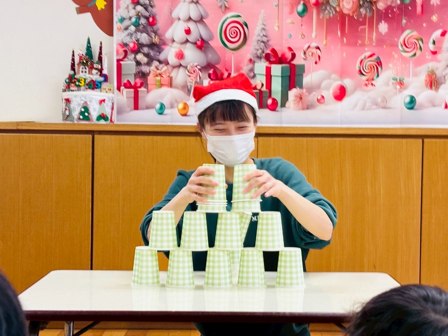 プレゼントを4つ先に積み上げた方が勝ちというゲームでみんな頑張っていましたよ😆
