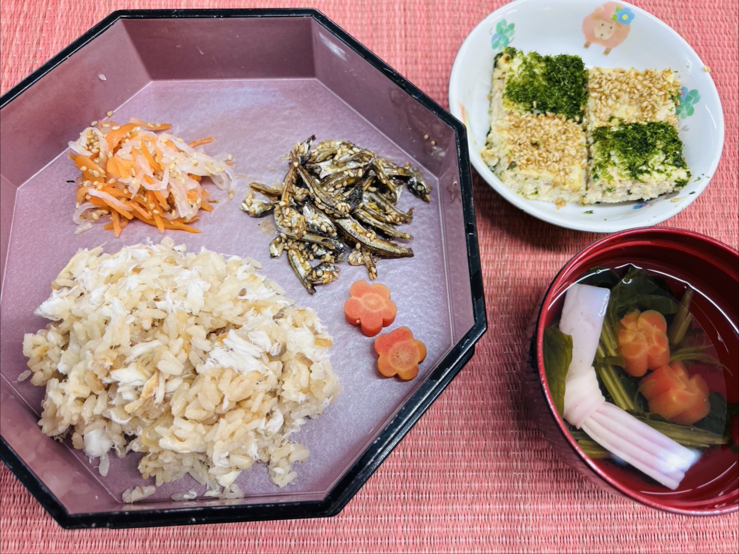 1月も早いもので半月が終わろうとしています。発表会まであとわずかとなり毎日子ども達の練習の様子が給食室まで聞こえて、毎日元気をもらっています。さて今日は1月のお誕生会でした。今月はお正月にちなんだメニューにしました。