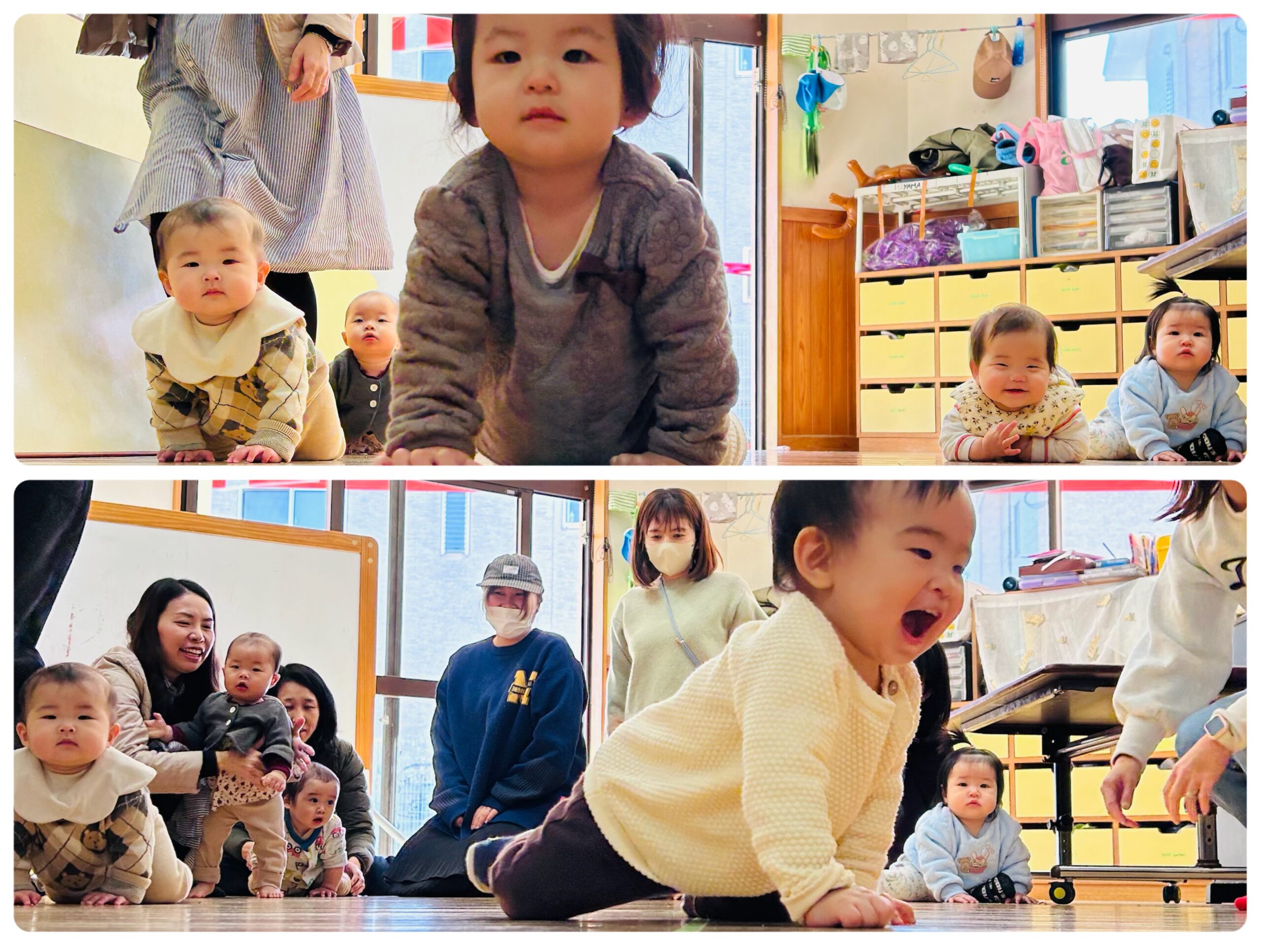 ぜひ、お友だち作りやリラックスしに来てくださいね🌼保育士が突然、「はいはい競争〜よーいどん!」と言いレースが開催されたりも?!!😂