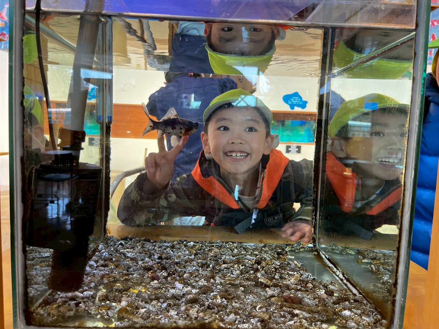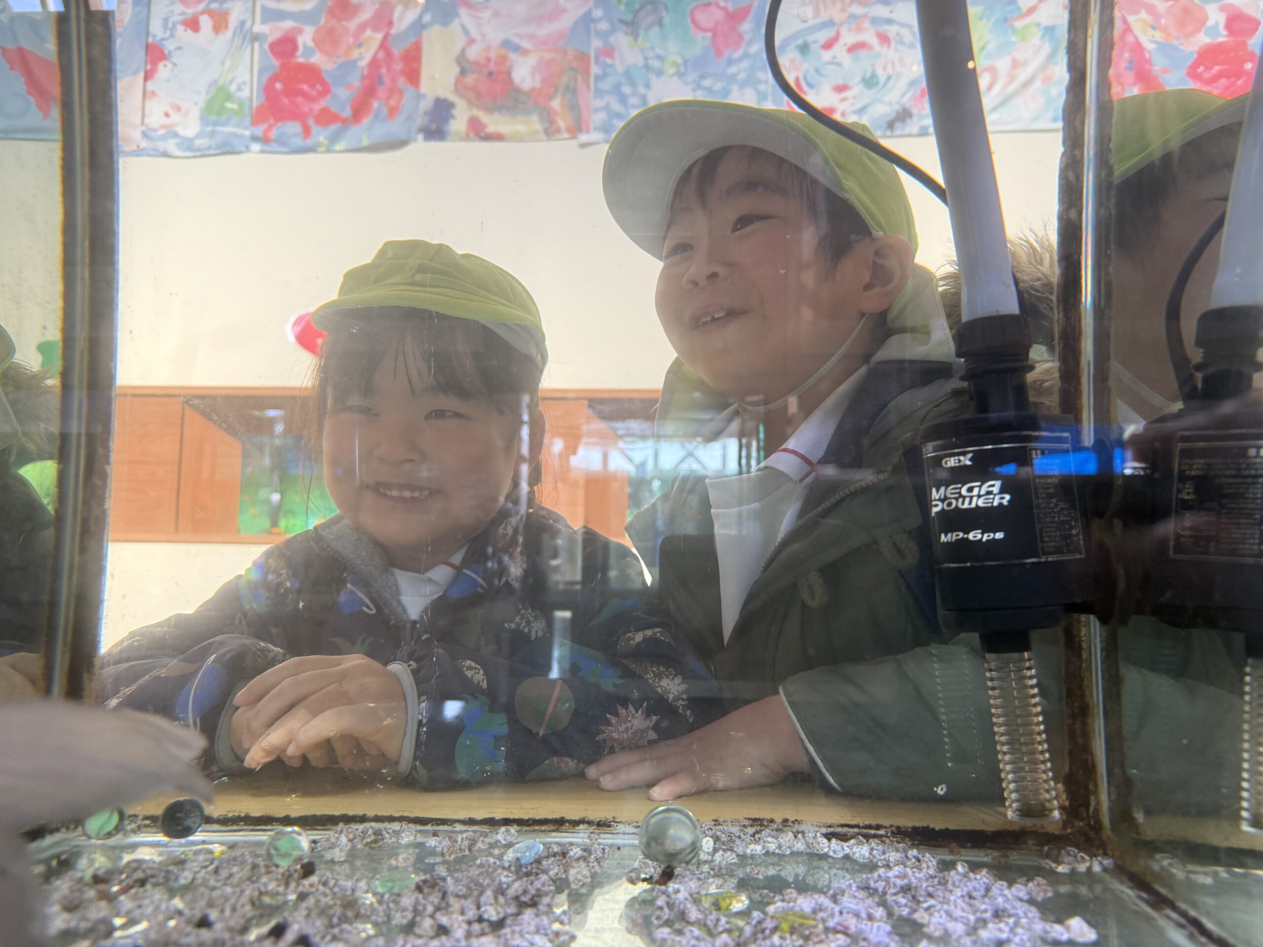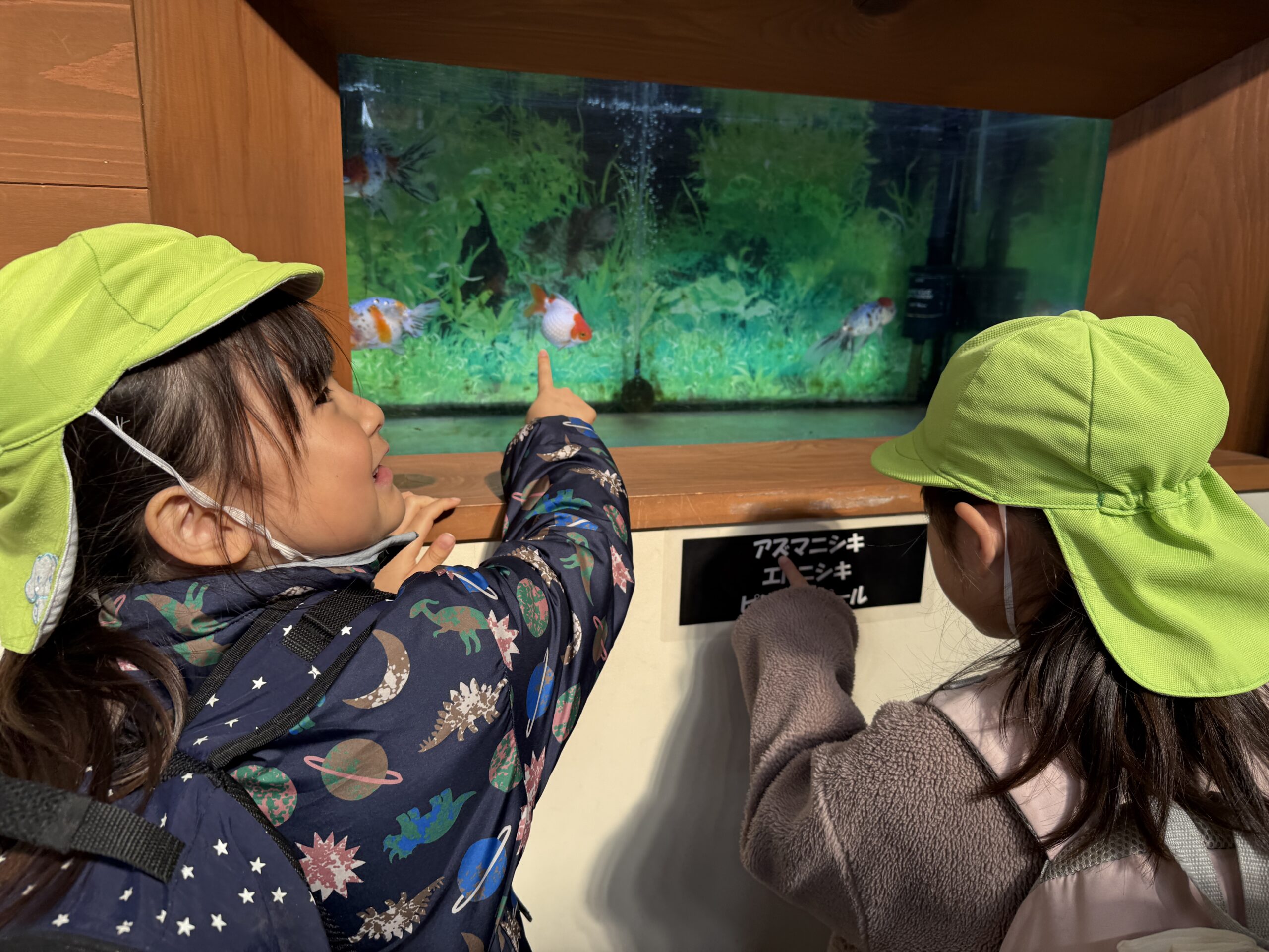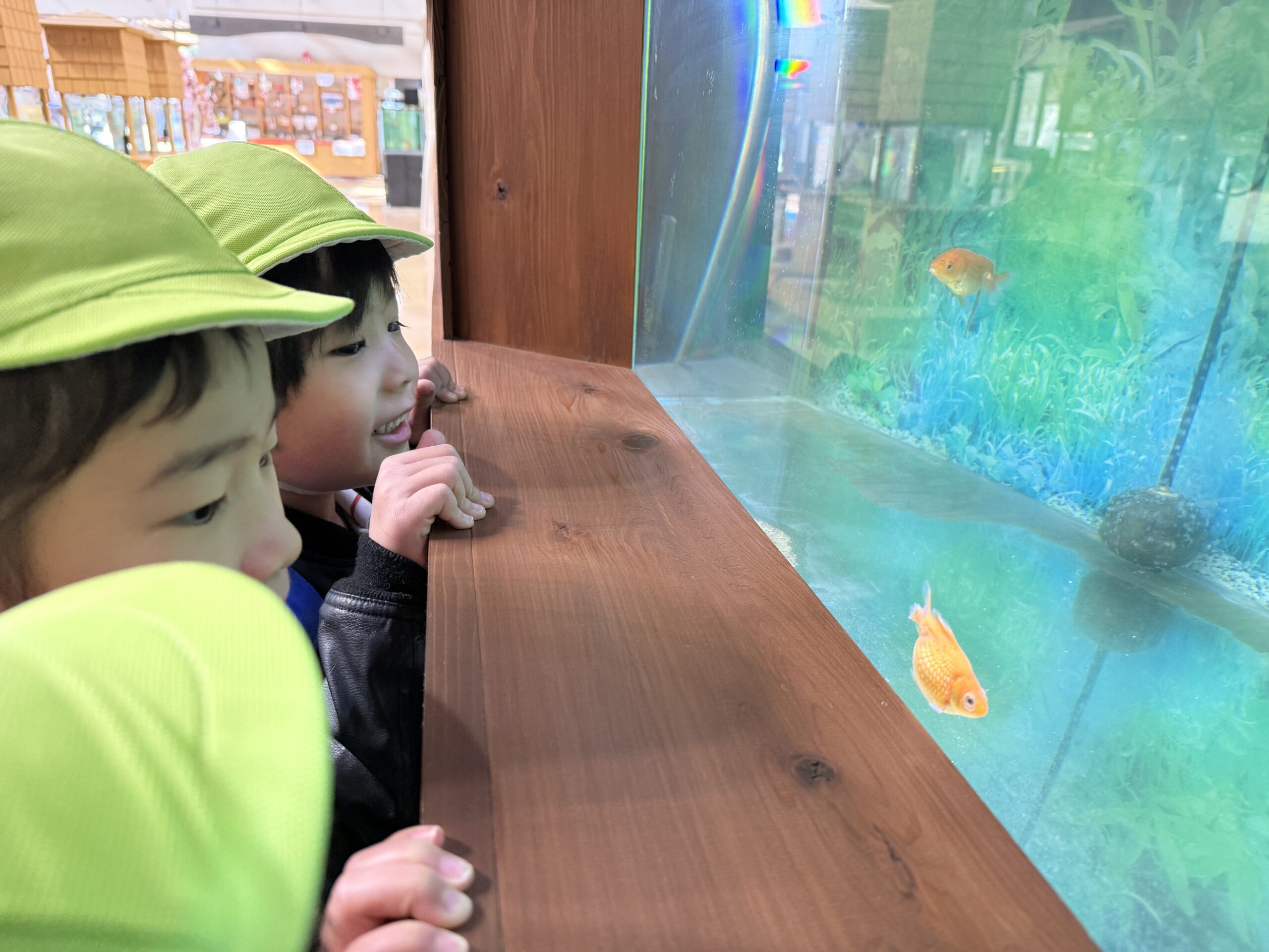 色んな金魚がいて不思議がったり、水槽の掃除を見せて頂き、興味津々のそらぐみさんでした⭐️