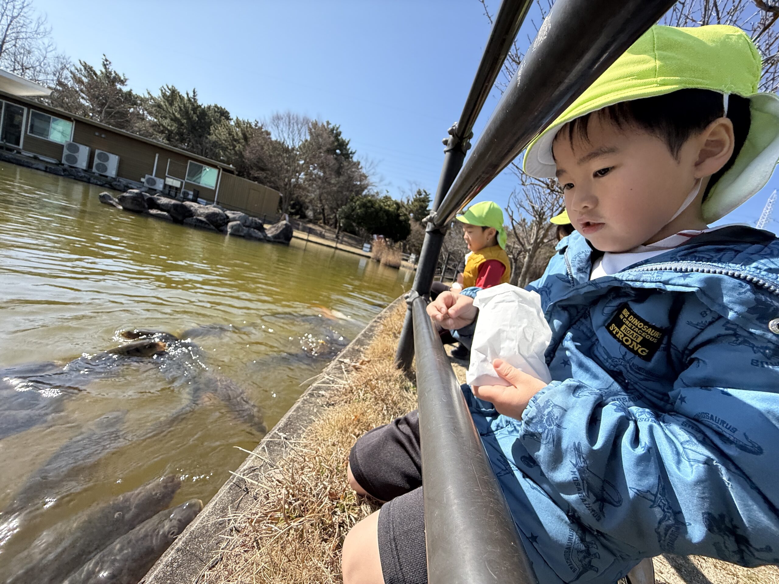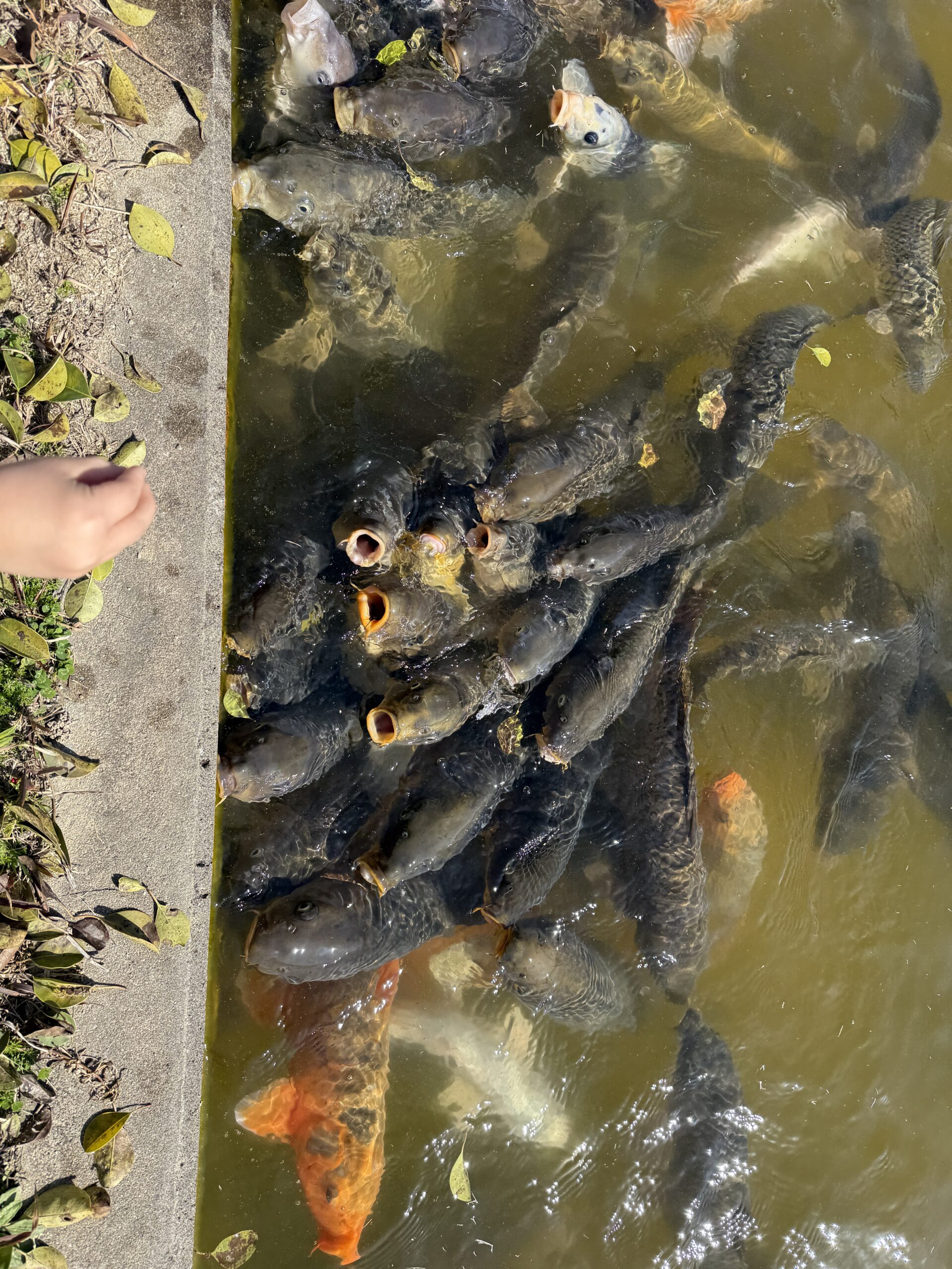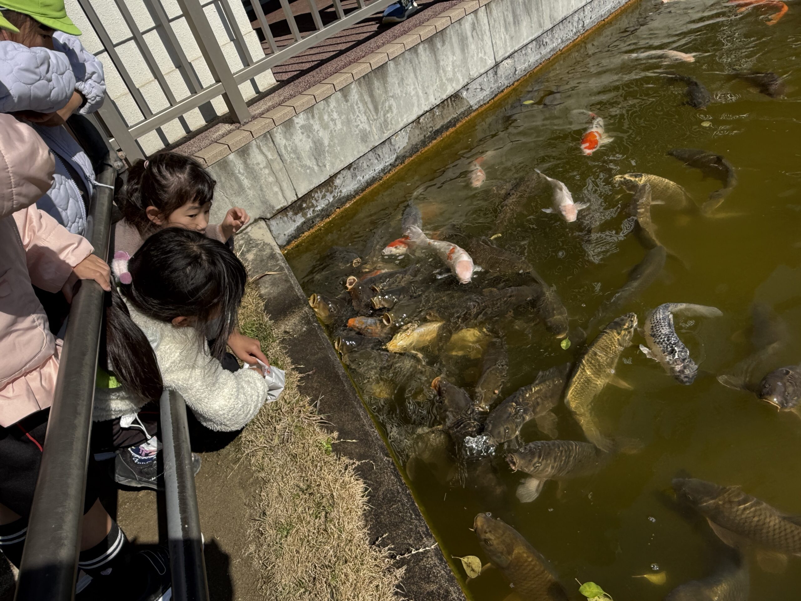 次はお待ちかね…楽しみにしていた、鯉の餌やり😊